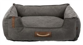 Dit leuke vierkante kussen met verhoogde rand is stoer en robuust! De mand is uitgevoerd in de Be Nordic-stijl van Trixie, met een katoen-polyester bekleding met stoere accenten van leer en touw. Het kussen heeft een vulling van schuimrubber vlokken voor meer comfort en is stevig geïntregreed, zodat wegglijden voorkomen wordt. De slipvaste onderkant zorgt ervoor dat jouw hond zonder hinder op kan staan en kan gaan liggen. Het leuke touw-detail kan bovendien goed dienstdoen als handvat.